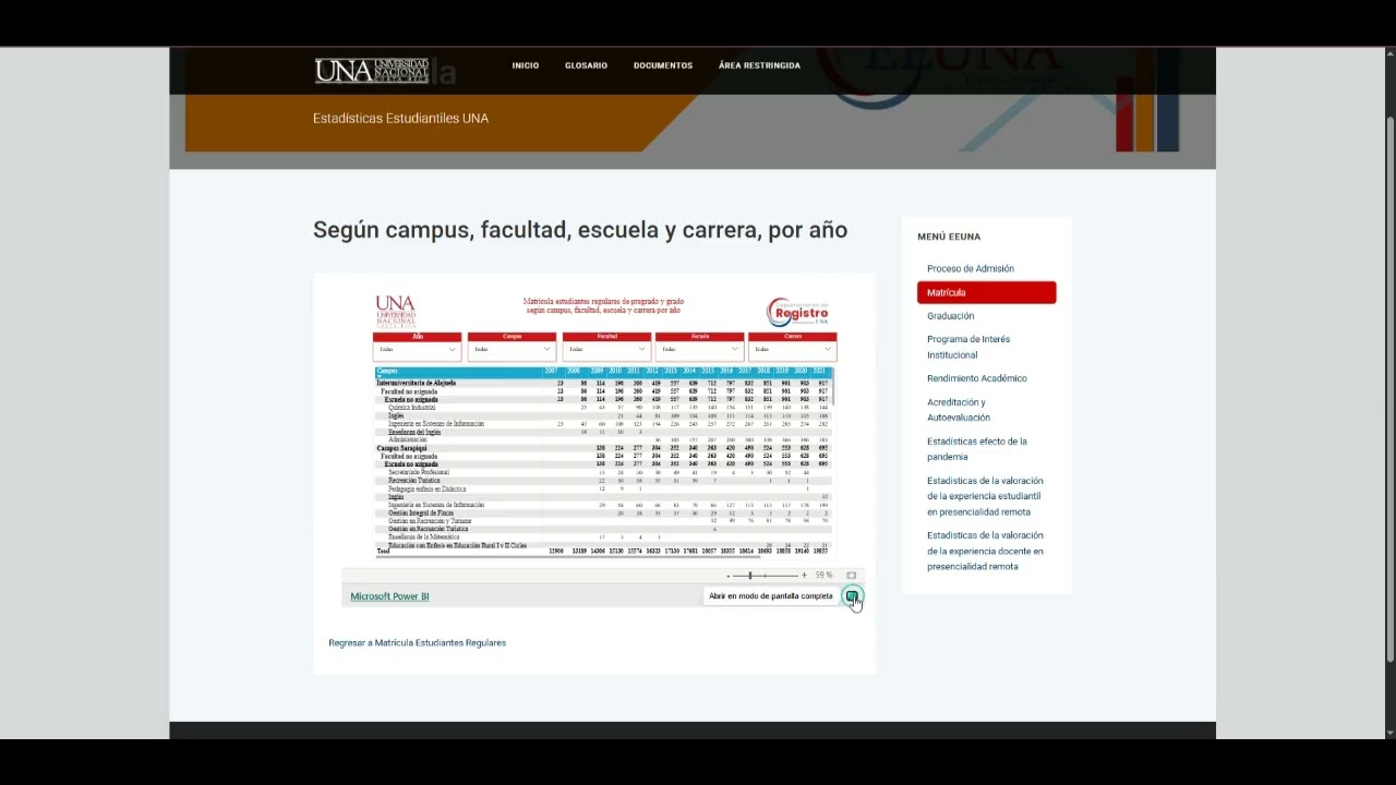 Este recurso audiovisual ofrece una introducción concisa al uso y la gestión de las estadísticas estudiantiles en el sitio de Estadísticas Estudiantiles EEUNA (EEUNA), con el propósito de apoyar la consulta, el análisis y la toma de decisiones académicas e institucionales.